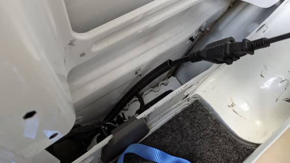 goes through the plastic and through a little plug in the sheet metal (which ya really can't see) ta here