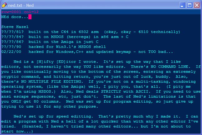 cursor down, stop at row MAX_ROW, (#define'd in Ned.h)